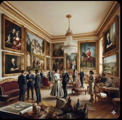 - À défaut de pièces d’époque, des œuvres contemporaines (impressions sur toile ou supports nobles) réalisées avec le concours de l’Intelligence Artificielle, visant à sublimer et réintégrer harmonieusement les photographies et portraits anciens dans leur contexte historique.