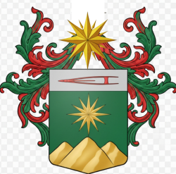 - **Blasonnement** : De sinople à une montagne à trois coupeaux d'or, surmontée d'une étoile à seize rais d'or facettés (Étoile de la Lignée) ; au chef d'argent chargé d'une navette de tisserand de gueules posée en fasce.