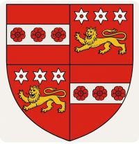 Blasonnement :Écartelé : aux 1 et 4 de gueules à la fasce d’argent chargée de quatre roses de gueules ; aux 2 et 3 de gueules au lion léopardé d’or, armé et lampassé du même, accompagné en chef de trois étoiles percées d’argent.