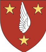 - Armes : De gueules, au demi-vol sénestre d'argent, accompagné de trois étoiles d'or. Source, Travail personnel. Auteur, ByacC. SVG information. InfoField.CC BY-SA 3.0