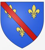 - Blason : D’azur à trois lys d’or, au bâton de gueules brochant en bande sur le tout.