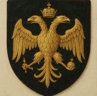- Blasonnement : écu byzantin orné de l’aigle impérial bicéphale, symbole du pouvoir universel.