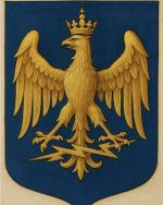 - Armoiries : d’azur à l’aigle impériale d’or empiétant un foudre.