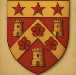 > *De gueules au chevron d’or chargé de trois quintefeuilles de gueules, accompagné de trois tours d’or, au chef d’or chargé de trois étoiles de gueules.*