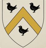 - Formes modernes : D’argent au chevron d’or, accompagné de trois merlettes de sable.