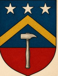 D’azur au chevron d’or accompagné de trois étoiles d’argent ; à la champagne de gueules chargée d’un marteau d’artiste d’argent.’’