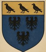 D'azur, à la fasce d'or, chargée de trois aigles de sable, au chef d'or chargé de trois merlettes de sable. (Variante : Les armoriaux anciens mentionnent plus simplement D'azur à la fasce d'or chargée de trois aigles de sable).
