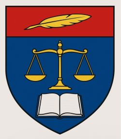 Blasonnement : D’azur, à une plume d’argent posée en pal, accostée de deux livres d’or ouverts ; au chef d’argent chargé d’une étoile de gueules.