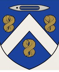 Blason proposé (ALFI) : D’azur au chevron d’argent accompagné de trois écheveaux de lin d’or, deux en chef et un en pointe ; au chef d’azur chargé d’une navette de tisserand d’argent.