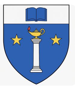 - Émaux : azur, argent, or. - Variante ancienne : chef d’argent au livre de gueules (non retenue par la version officielle ALFI). - Devise : *Lux et Caritas* — « Lumière et charité ». - Supports : deux lions d’azur lampassés de gueules. - Cimier : lampe d’or allumée.