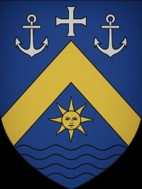 Blasonnement proposé : D’azur au chevron d’or accompagné en chef de deux ancres d’argent et en pointe d’un soleil d’or rayonnant sur une mer d’azur mouvant de la pointe, le tout surmonté d’une croix potencée d’argent.