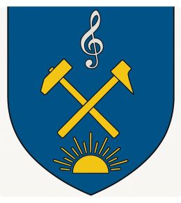 Blasonnement (création ALFI) : D’azur au marteau et au burin d’or passés en sautoir, accompagnés en chef d’une clef de sol d’argent et en pointe d’un soleil levant d’or.