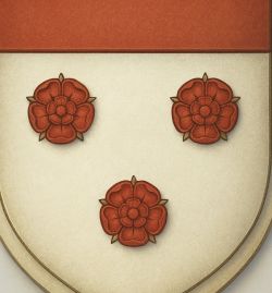 Blason de la famille Gaillard figurant dans la base Roglo D'argent à trois roses de gueules, ordonnées deux et un, et un chef de Gueules.
