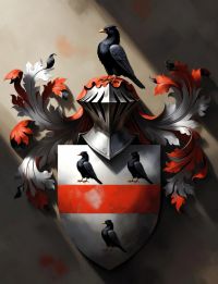 Blasonnement : D’argent, à une fasce de gueules accompagnée de trois merlettes de sable.