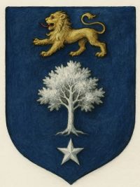 D’azur à un arbre de sinople, au chef un lion léopardé d’or, à la pointe une étoile d’argent.