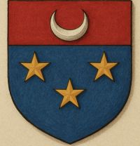 - Blasonnement : D’azur, à trois étoiles d’or, au chef cousu de gueules chargé d’un croissant d’argent.