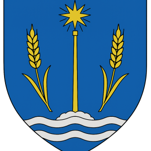 - D’azur, à un mât d’or sur une mer d’argent mouvante de la pointe, sommé d’une étoile d’or rayonnante, accosté de deux épis de blé du même.*
