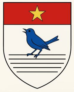 Blasonnement proposé (création ALFI) : D’argent à une portée de musique de sable, sommée d’un rossignol d’azur chantant, au chef de gueules chargé d’une étoile d’or.