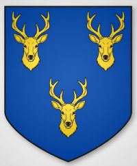 "D'azur, à trois rencontres de cerf d'or."