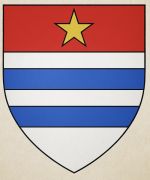 - Blasonnement proposé : D’argent à trois fasces d’azur, au chef de gueules chargé d’une étoile d’or.