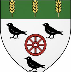 - **Blasonnement proposé :** D'argent à trois merlettes de sable, accompagnées en cœur d'une roue de moulin de gueules, et au chef de sinople chargé de trois épis de blé d'or.