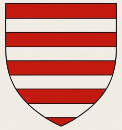 - Blasonnement : « Fascé d'argent et de gueules de huit pièces. »