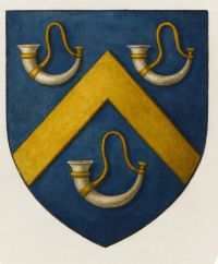 D’azur au chevron d’or, accompagné de trois cors de chasse d’argent liés d’or (Armorial de l'Association de Défense de la Noblesse Française - ANF)