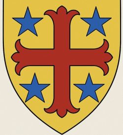 - D’or à la croix ancrée de gueules, cantonnée de quatre étoiles d’azur.*