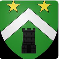 Blasonnement de proposition (ALFI) De sinople au chevron d'argent, accompagné en chef de deux étoiles d'or, et en pointe d'une tour maçonnée de sable.