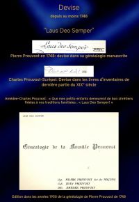 et le littéraire C. Lecigne, en 1911, publié chez Grasset, au sujet du poète Amédée Prouvost: " Dès l’âge de cinq ans, Amédée Prouvost se sentit dépositaire d’une tradition et comme l’héritier présomptif d’une royale lignée : l apprit un à un le nom de ses prédécesseurs et que chacun d’eux signifiait depuis quatre siècles et demi, beaucoup d’honneur, de travail et de foi chrétienne. On ne voulut pas qu’il puisse méconnaître ce passé et, si, par impossible, il lui arrivait d’être infidèle, qu’il eût l’excuse de l’ignorance. Un jour le père prit la plume et, sans orgueil, sans autre prétention que de donner à ses enfants la conscience intégrale de leurs origines, il écrivit les annales de sa famille. Avant tout, il songea à celui qui était son premier né, l’espérance de la dynastie ; il s’adressa à lui :
